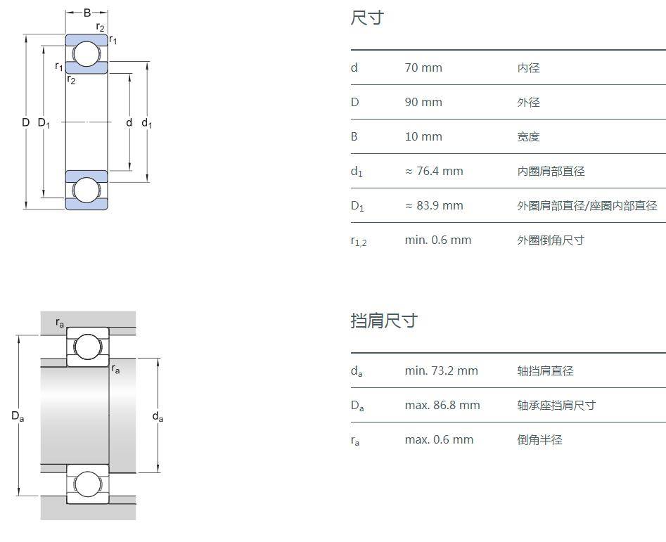 SIAIF不銹鋼深溝球軸承 S6814-2Z 詳細(xì)參數(shù)