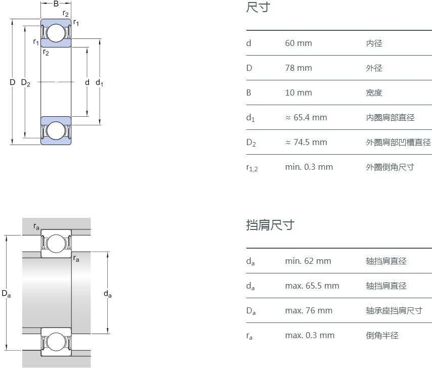 SIAIF不銹鋼深溝球軸承 S6215-2Z 詳細參數(shù)