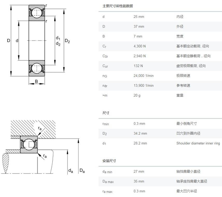 SIAIF不銹鋼深溝球軸承 S61805-2Z 詳細(xì)參數(shù)