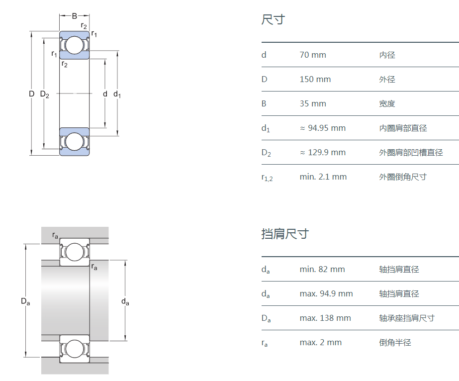 SIAIF不銹鋼深溝球軸承 S6314-2Z 詳細參數(shù)