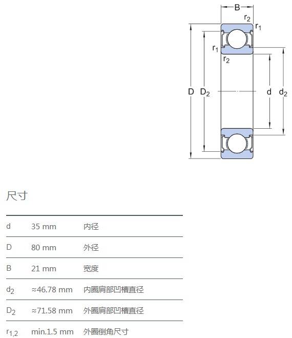 SIAIF不銹鋼深溝球軸承 S6307-2Z 詳細參數(shù)