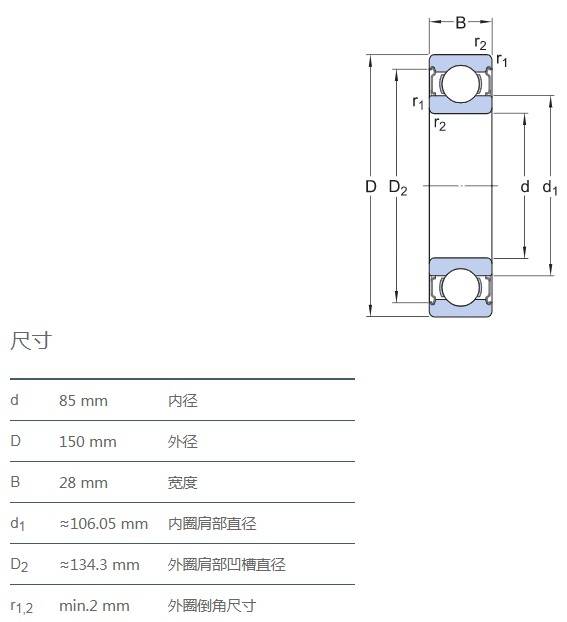 SIAIF不銹鋼深溝球軸承 S6217-2Z 詳細參數(shù)