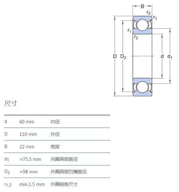 SIAIF不銹鋼深溝球軸承 S6212-2Z 詳細參數(shù)