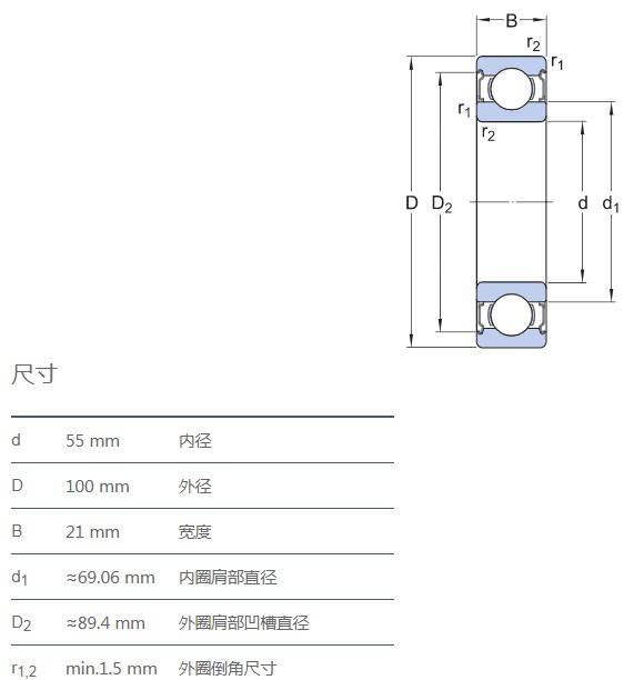 SIAIF不銹鋼深溝球軸承 S6211-2Z 詳細參數(shù)