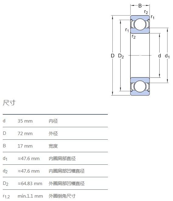 SIAIF不銹鋼深溝球軸承 S6207-2Z 詳細(xì)參數(shù)