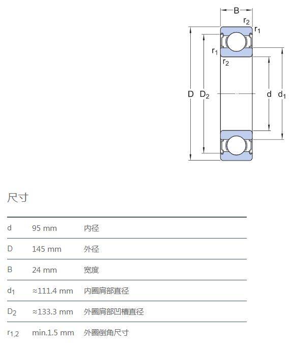 SIAIF不銹鋼深溝球軸承 S6019-2Z 詳細(xì)參數(shù)