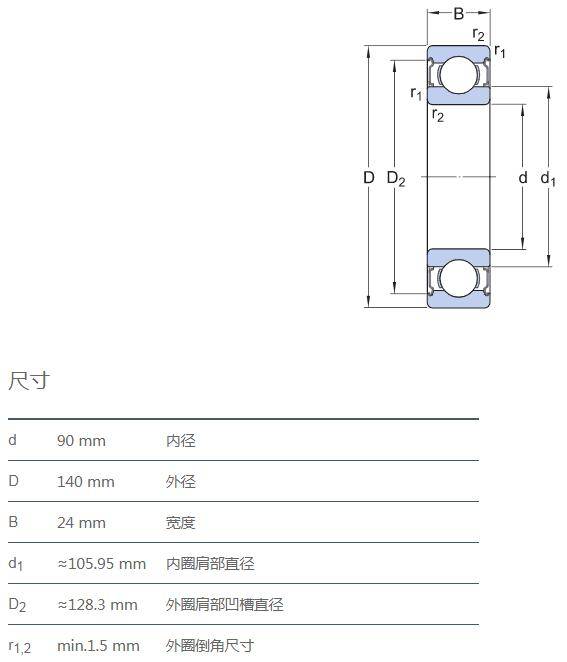 SIAIF不銹鋼深溝球軸承 S6018-2Z 詳細(xì)參數(shù)