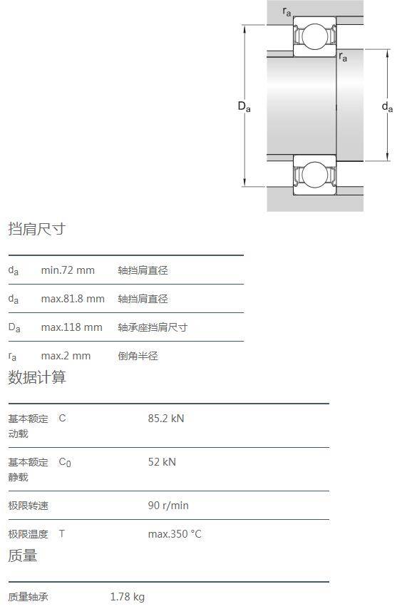 VA228用于高溫應用的軸承,配有冠狀石墨保持架,軸承的套圈和滾動體經過錳磷化處理,且徑向游隙為多倍 C5 游隙