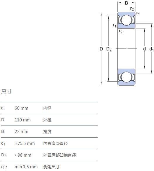 SIAIF耐高溫軸承 6212ZZ/VA201 詳細參數